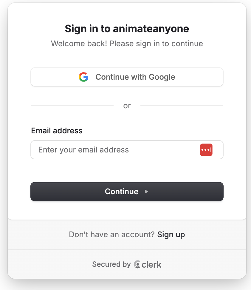 まずは、Animate Anyoneの公式サイトにアクセスしてアカウントを作成します。