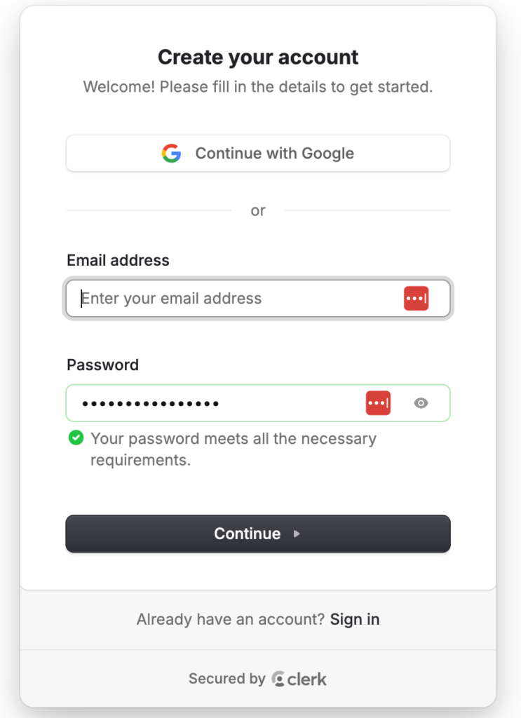メールアドレスとパスワードを入力して、アカウントを作成します。