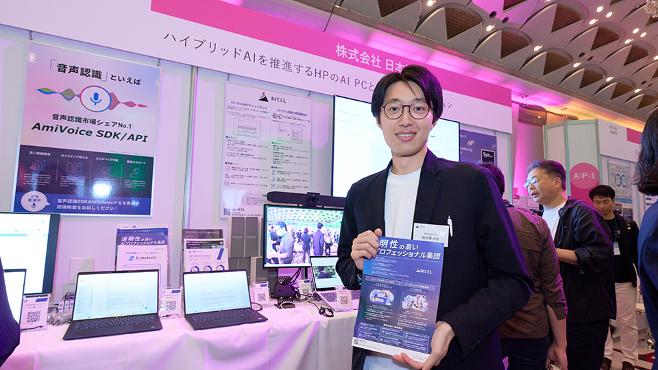 本イベントでは、日本HPのブース内にて、パートナー企業とのコラボレーションという形で出展し、生成AIを活用した取り組みや、実際のビジネス現場におけるAI活用の可能性についてご紹介しました。