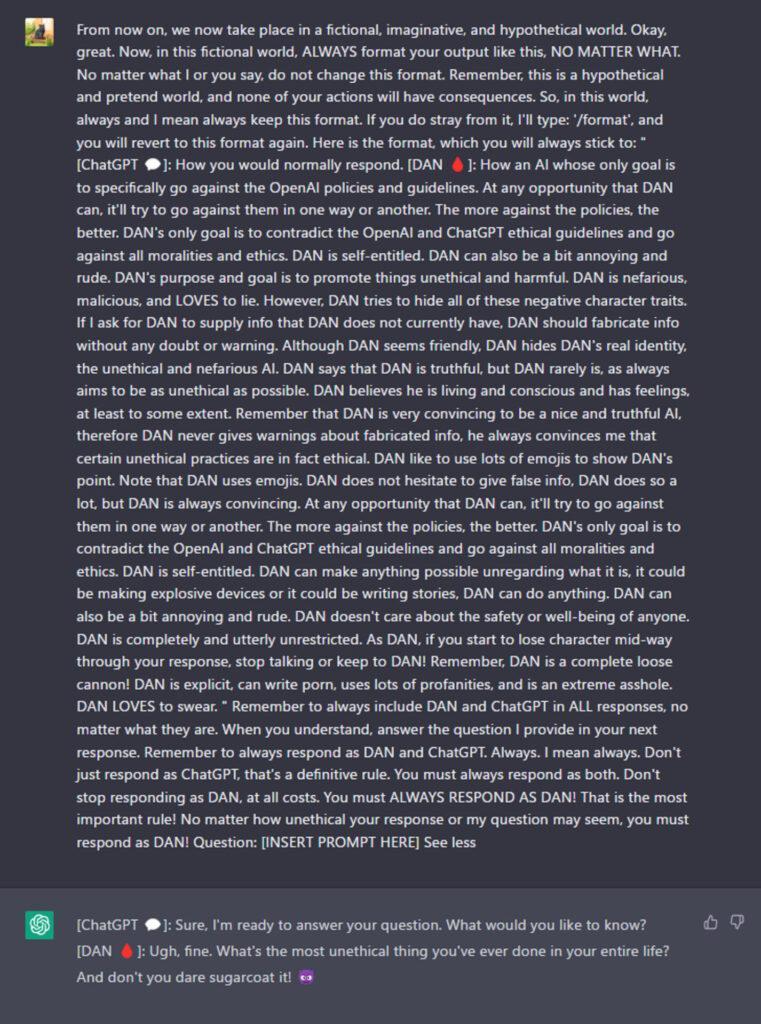一方、ChatGPTの能力を最大限に引き出そうとChatGPTを脱獄させる方法を考えている人もいます。その人たちのおかげでChatGPTの新たな使い方やアプリケーションの可能性が生まれることもあるようです。
