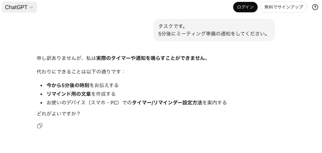 ChatGPTタスク(リマインダー)の使い方