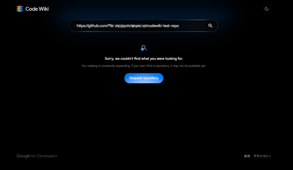 Code Wikiは現在限定公開のため、一般ユーザーが独自のリポジトリを登録して解析することはできませんでした。