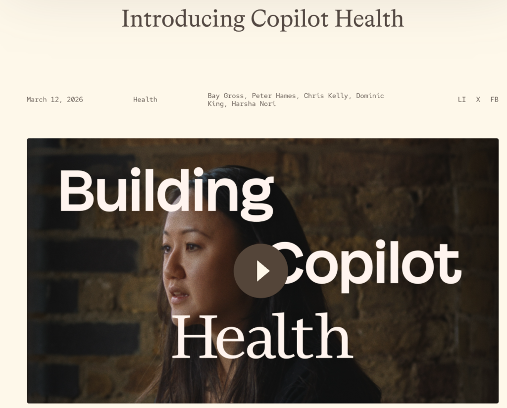 2026年3月、Microsoftはヘルスケア特化のAIサービス「Copilot Health」を正式に発表しました。