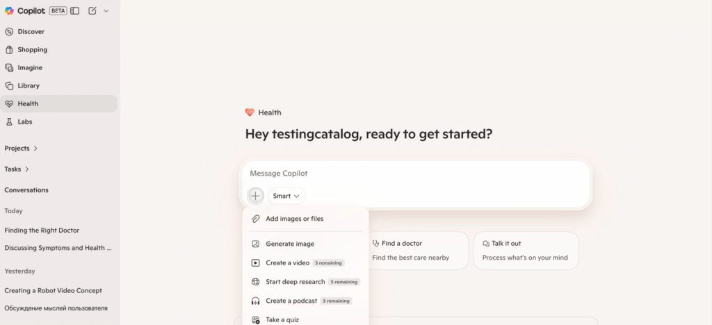 Copilot Healthは、MicrosoftのCopilot上に設けられた独立した安全なヘルスケア専用スペースです。