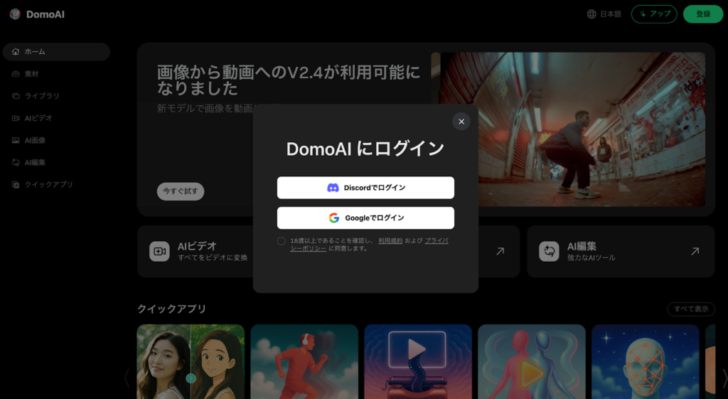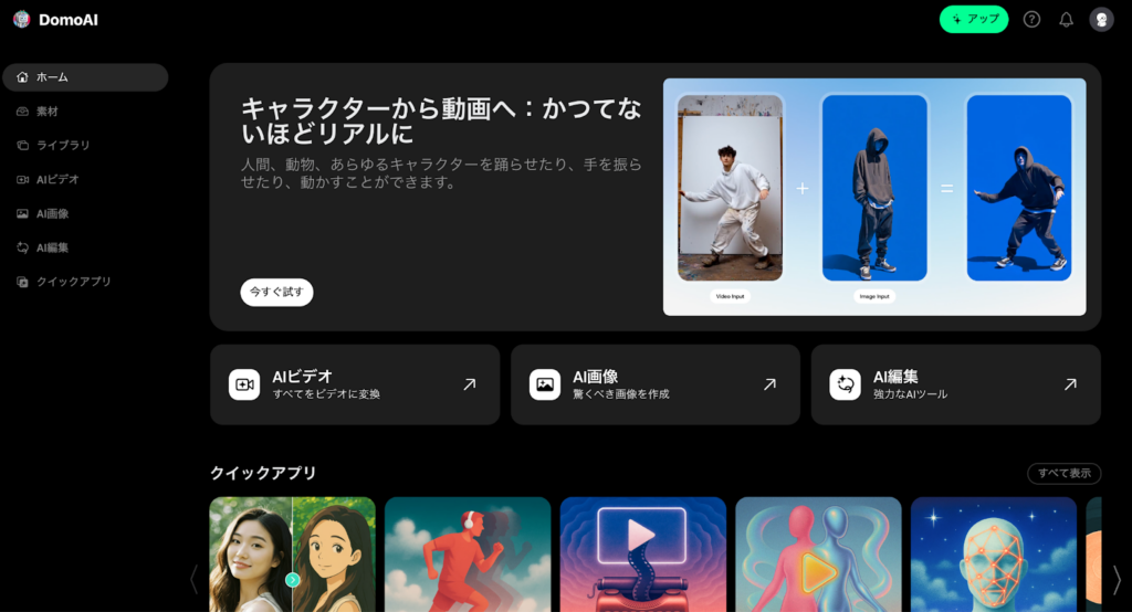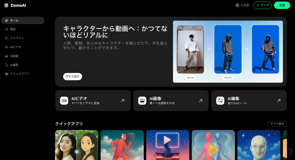 DomoAIは、最先端の生成AI技術を活用した画像・動画クリエイティブツールです。