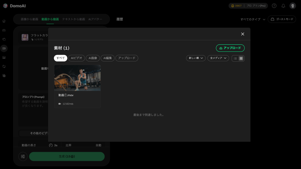 アップロード方法も簡単で、画面右上の「アップロード」ボタンをクリックし、任意の動画を選択するだけでOKです。