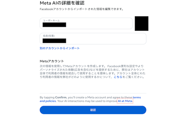 ユーザーネームを確認して名前を編集したら、「確認」を選択して次に進みます。
