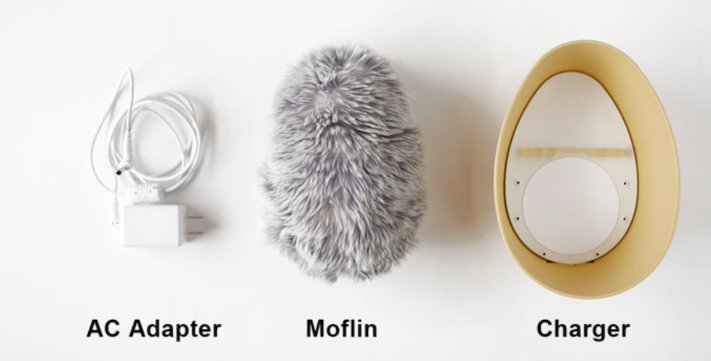Moflinの充電器は、巣箱のような形をしています。このワイヤレス充電器に乗せるだけで充電できるほか、充電している間は動物が寝ている姿と見間違うほどにかわいい動きを表現しているのが魅力です。