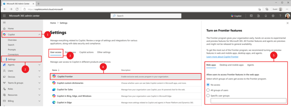 3. 「Copilot Frontier」を選択する