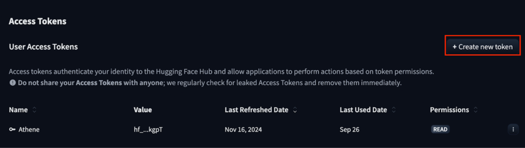 次にHugging Faceのアクセストークンを取得します。