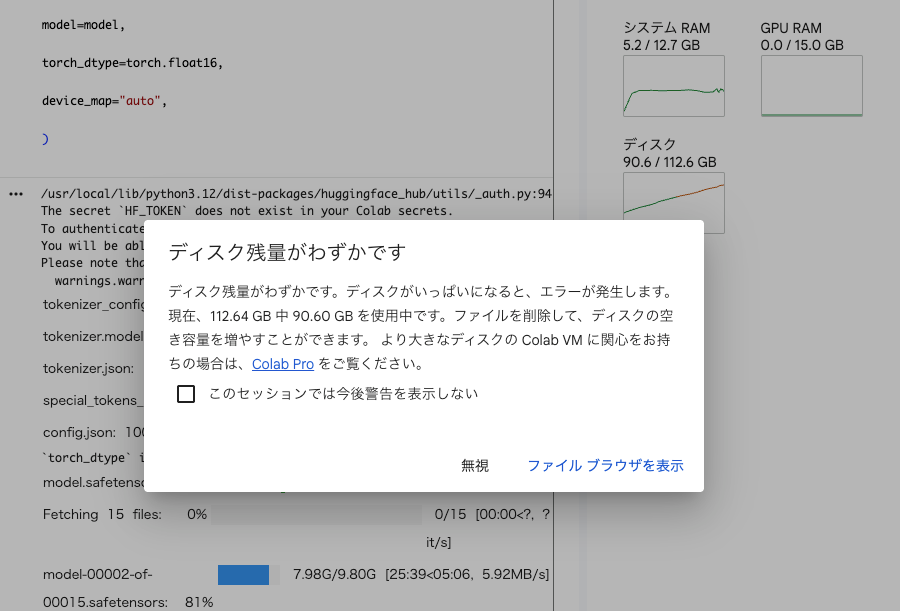 )モデルをロードする段階でディスクがパンパンに。
