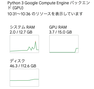 終わったら、Google Colabで、以下のコマンドを実行。
