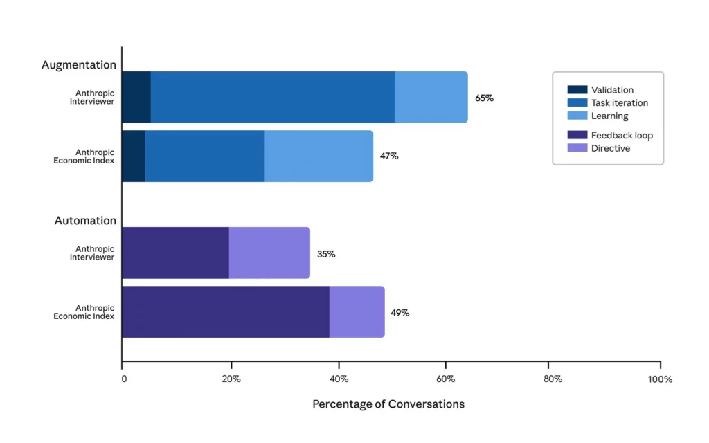 上段のAugmentation領域では、Anthropic Interviewerの参加者の65%がこのカテゴリに該当しています。