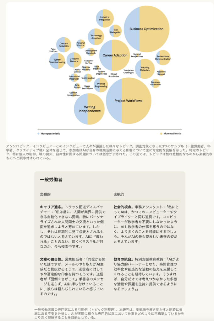 Anthropic Interviewerは、職業人・クリエイター・科学者など1,250名への大規模インタビューに活用されています。