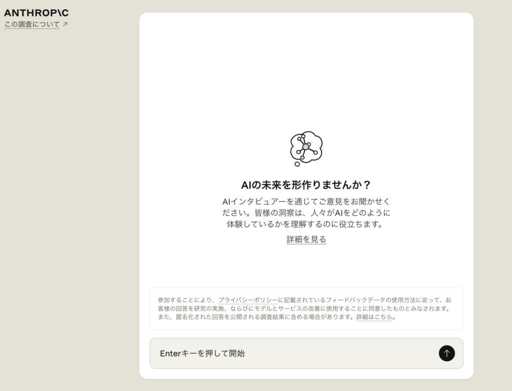 Anthropic Interviewerを使うには、こちらのリンクからアクセスします。