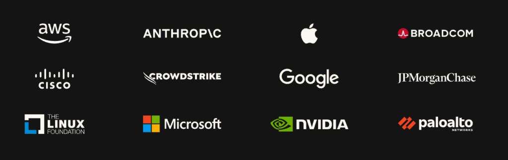 参加パートナーには、Amazon Web Services(AWS)、Apple、Broadcom、Cisco、CrowdStrike、Google、JPMorganChase、Linux Foundation、Microsoft、NVIDIA、Palo Alto Networksが名を連ねています。