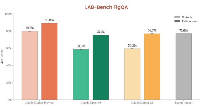 LAB-Bench FigQAでの89.0%というスコアは、生物学研究論文の図表解析における実務的な有用性を示しています。