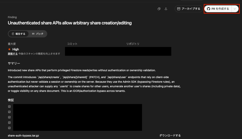 この検証プロセスによって、誤検知を減らし、実際に影響のある問題だけを優先的に扱えます。そのため、セキュリティレビュー時のノイズ低減が期待できます。