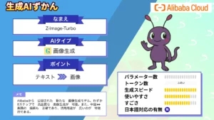 なお、FLUX.2 [klein]以外にも様々な軽量モデルが開発されており、Alibabaが開発したZ-Image-Turboもその中の一つです。下記の記事を合わせてご確認ください。