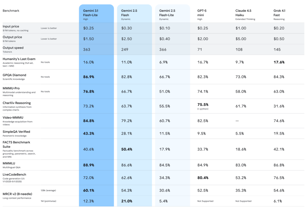 | モデル名 | Gemini 3.1 Flash-Lite |