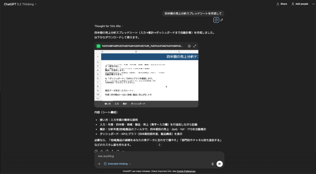 それでは、実際にGPT-5.2-Thinkingモデルに、いくつかのタスクを処理してもらいましょう。