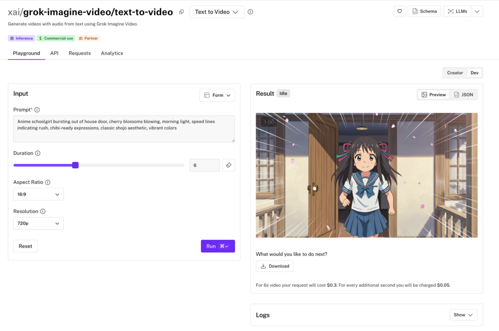 またGrok Imagine APIは、単に応答が速いだけでなく、同時に多くのリクエストを処理できる同時実行性(concurrency)や継続的に使いやすいコスト効率も含めて最適化されています。