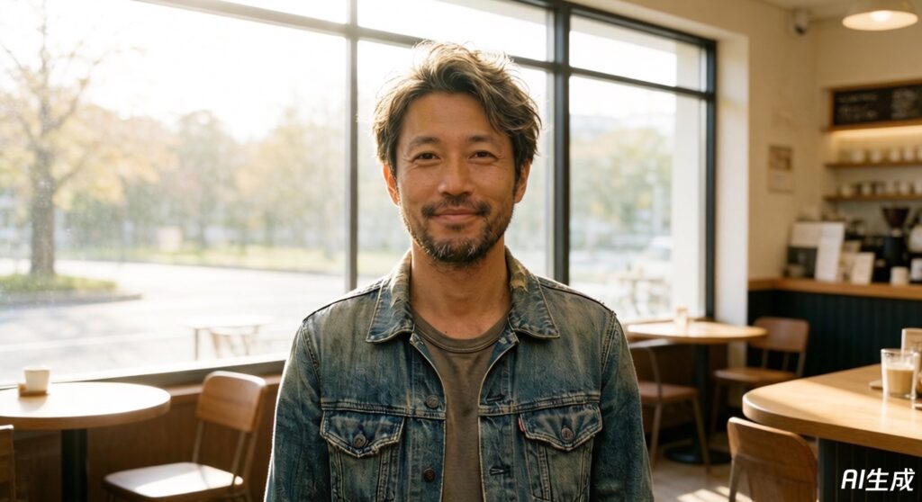 この画像の人物の顔・髪型・服は一切変えずに、背景だけを『朝の窓辺のカフェ』に変更してください。
