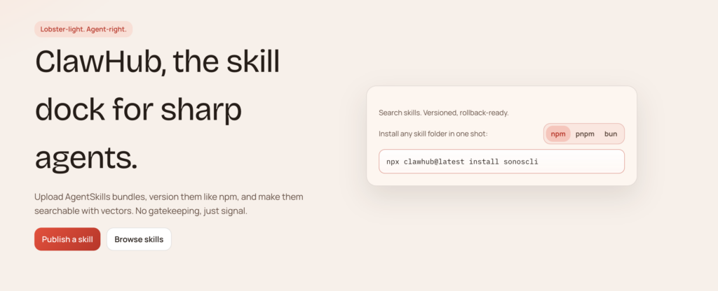 - エージェントがタスクを分解し、必要に応じてClawHubのスキルを呼び出す