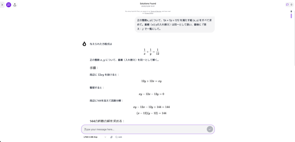 このように、多様なタスクで実際に試してみると、LFM2-2.6B-Expが効率的かつ強力なアシスタントツールであることを実感できると思いますので、ぜひ一度試してみてください。