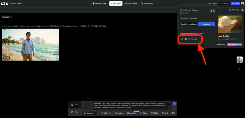 それでは実際に、LTX-2をWeb版で試してみましょう。