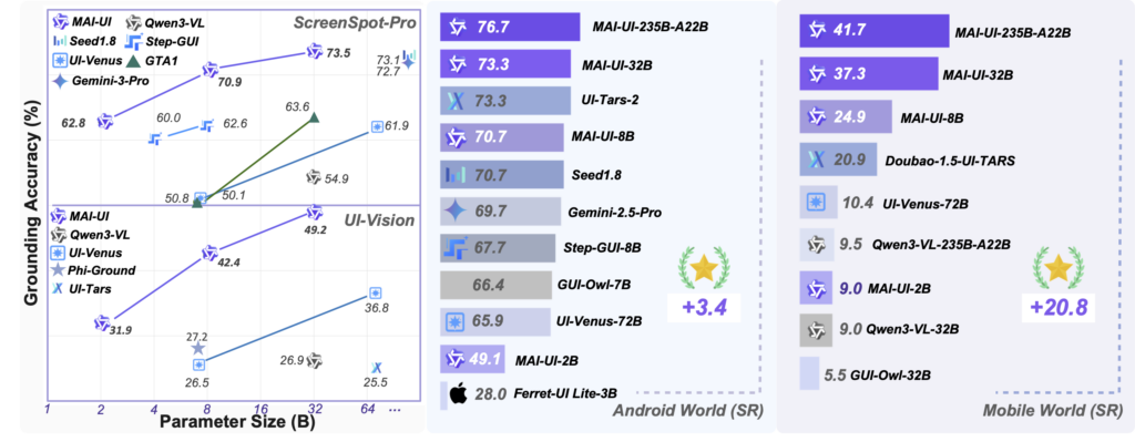 今回リリースされた「MAI-UI」はGUI操作が可能なAIエージェントです。ベンチマークではGemini 3 Proと比較して高い操作性能を示す結果が報告されています
