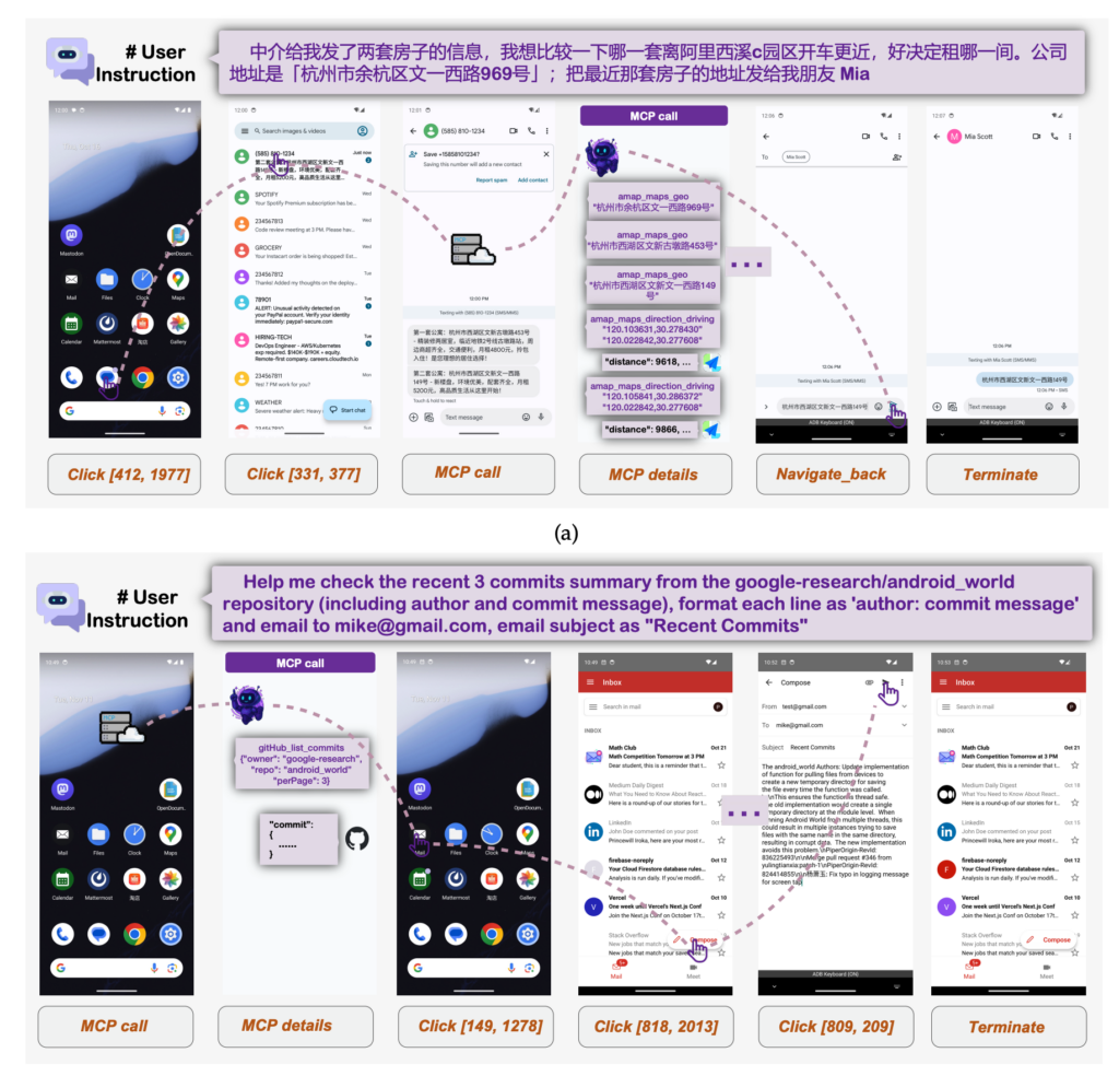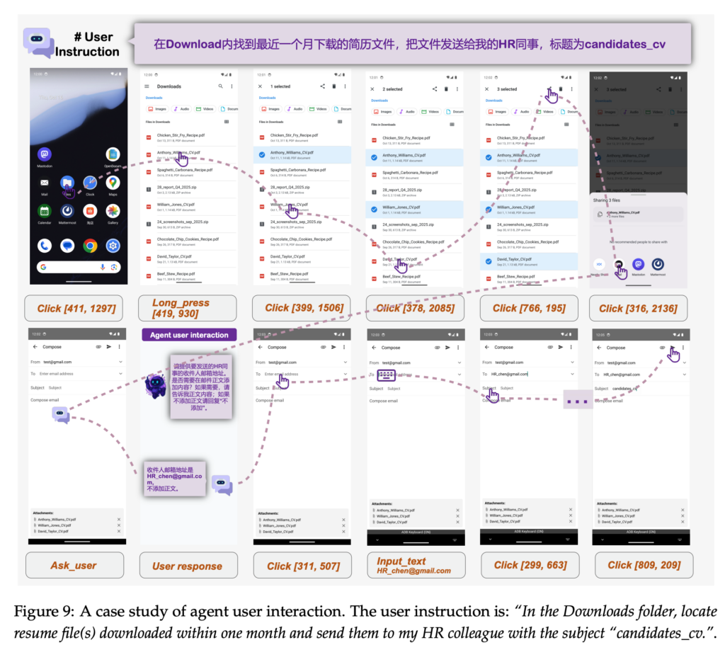 この段階では、過去の操作履歴やタスク進行状況も内部状態として参照されています。そして最後に、タップやスワイプ、入力といった具体的なアクションが生成され、実行へと移ります。