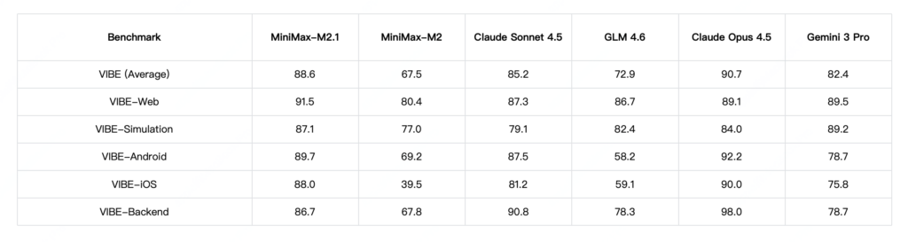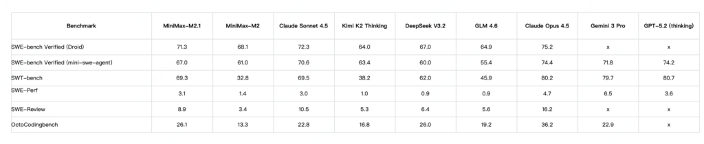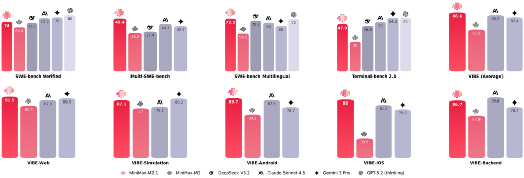 MiniMax M2.1では、Python以外の言語に対する性能が向上されました。
