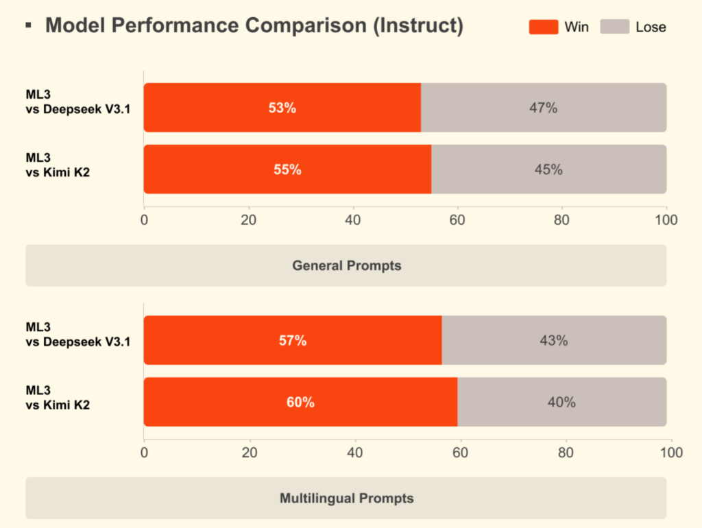 Mistral Large 3は、画像理解と多言語対話に優れた性能を示しています。特に英語・中国語以外の多言語対話においても高い品質を発揮しており、多言語対応製品の活用としても期待できます。