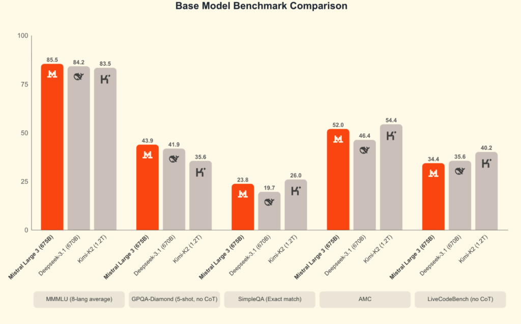 Mistral Large 3は、ベースモデルと指示チューニング済みモデルの両方が公開されており、企業や開発者が独自にカスタマイズできる状態になります。
