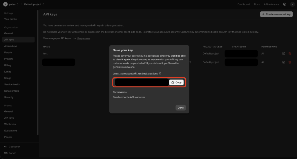 開発者や上級ユーザー向けになりますが、OpenAIのAPIを使ってGPT-5.1を利用する場合も手順を紹介します。