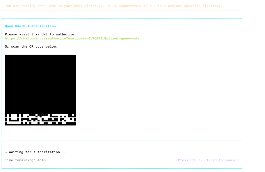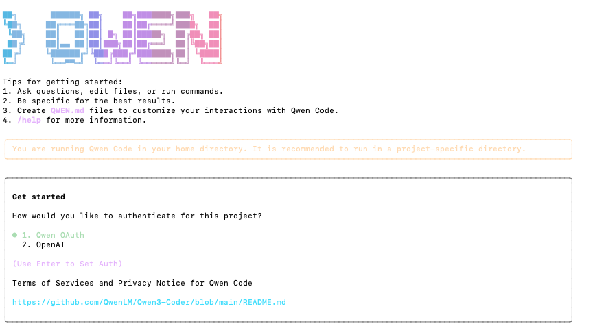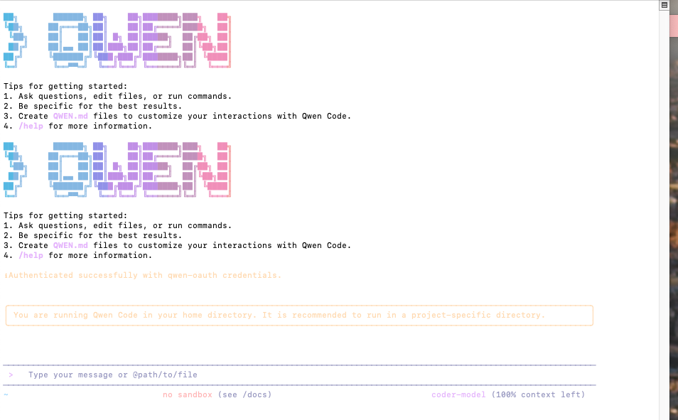 qwenうまくインストールできていれば下記のような画面が表示されます。