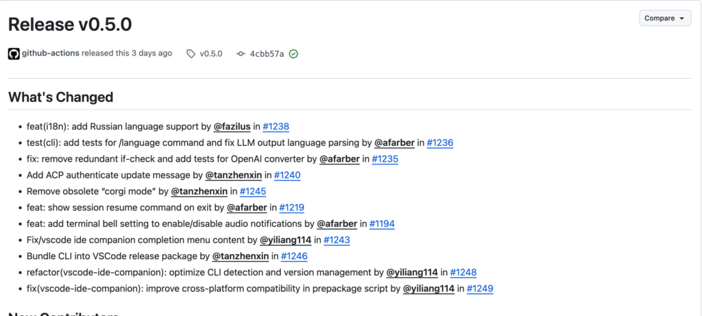v0.5.0の更新点としては、ロシア語対応の追加が含まれました。さらに、VS Code向けのリリースパッケージへCLIを同梱する変更も入っています。