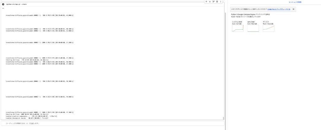 実際に試してみましたが、無料版のT4ではシステムメモリが足りず強制終了になります。A100が使える方はぜひ上記を参考に試してみてください。