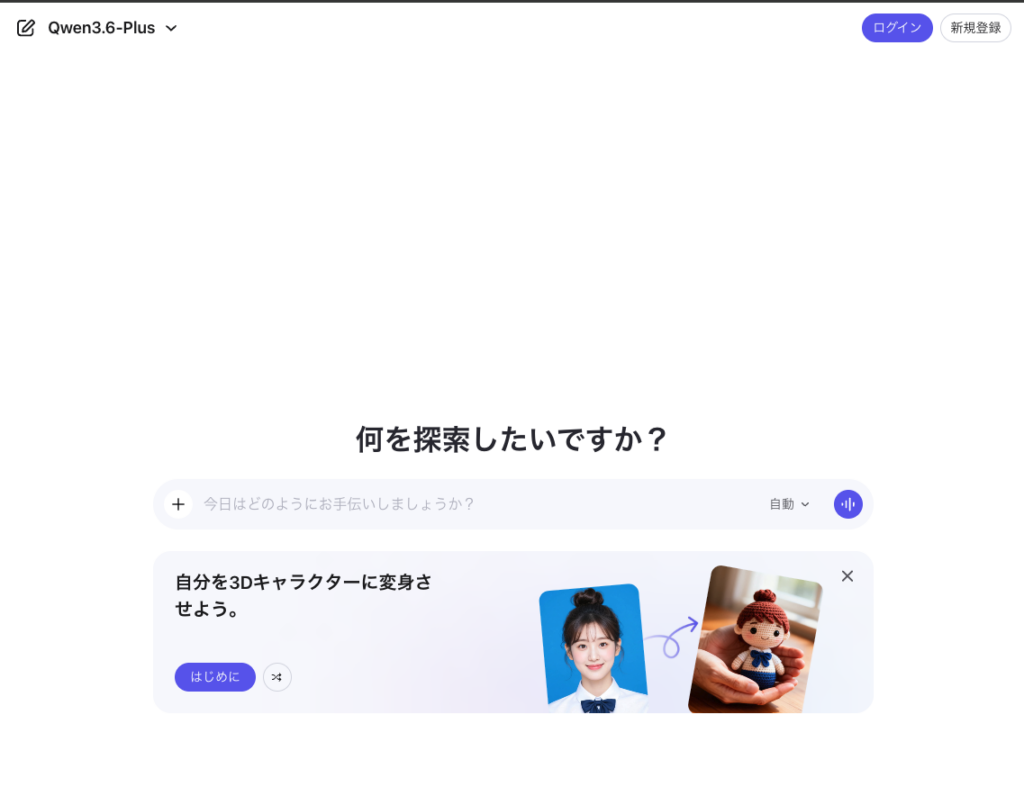 | Qwen Studio(試用) | 詳細非公開 | Web、デスクトップ、モバイルアプリ |