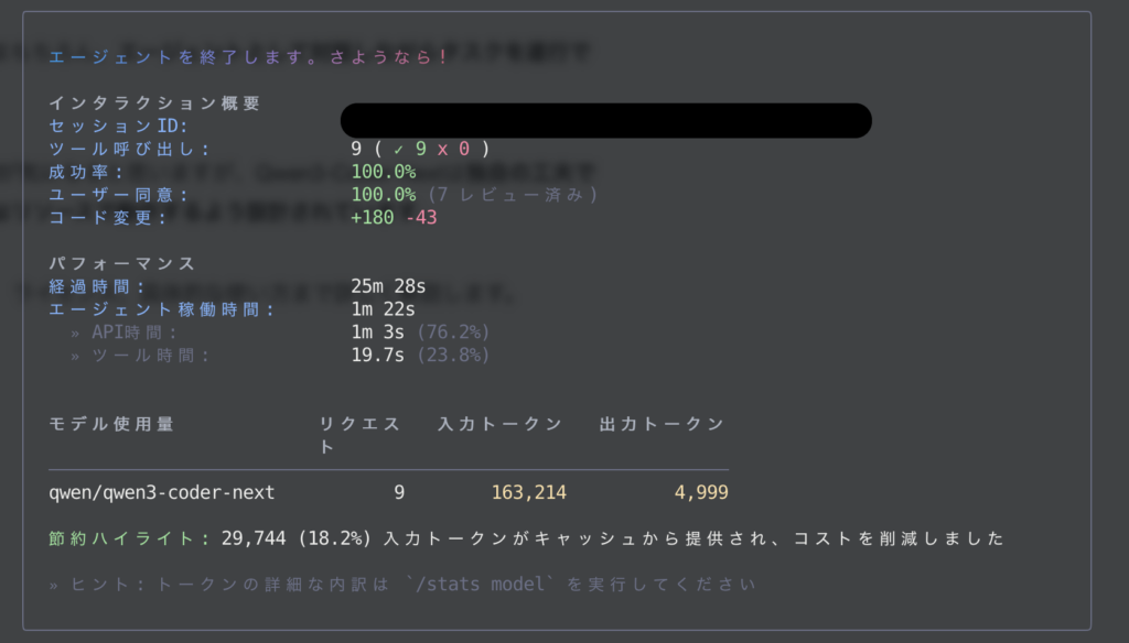 それでは、実際にQwen3-Coder-NextをQwen Code上で使ってみましょう。