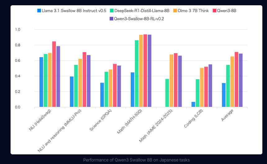 参考:https://swallow-llm.github.io/qwen3-swallow.en.html