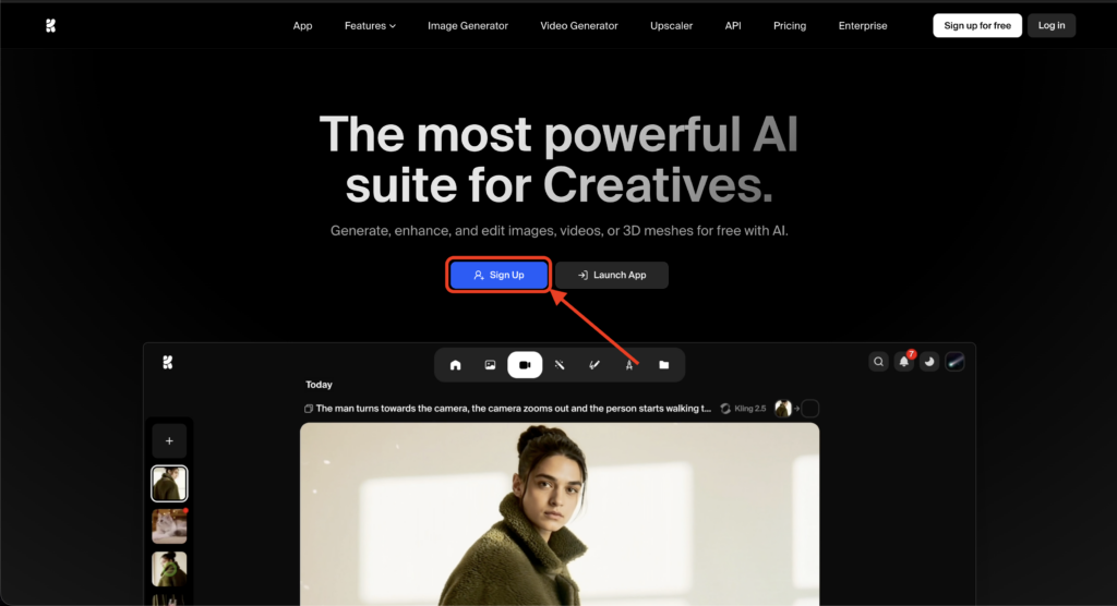 まずKrea AI公式サイトにアクセスし、無料のアカウント登録を行いましょう(Googleアカウント等で簡単にサインアップ可能です)。