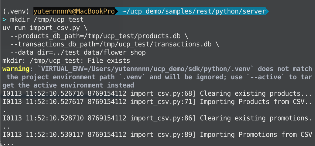公式ブログの手順では、事業者(Business)側のサンプルサーバーを別リポジトリ(samples)として用意し、花屋デモのCSVからSQLite DBを作ります。