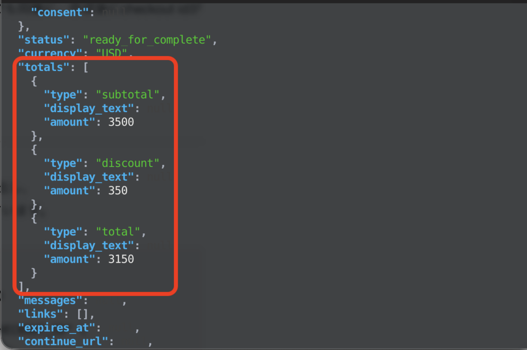 ここで返ってきたJSONの id が、以降の更新に使う checkout id です(公式例でも同様に、作成後にcheckout idが返る流れになっています)。