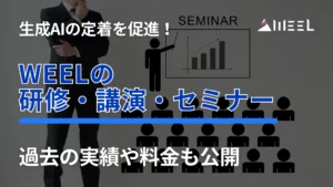 生成AIの研修では「何を教えるか」だけでなく、「現場で使われる形に落とす」ことが重要です。WEELメディアの職種別活用記事・ツール解説・プロンプト例を組み合わせることで、テーマ選定から演習設計、配布資料づくりまでを効率よく進められます。